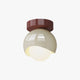 This ceiling lamp has a retro charm. The round base is connected to a pole made of