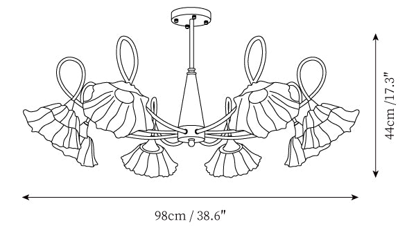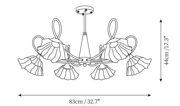 • 6 heads L 83cm x H 44cm / L 32.7″ x H 17.3″ / Walnut color & Brass / 3 Color Temperature Switchable - $ 460.00