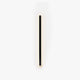 black and gold. The rectangular base is matched with a long lamp arm. The lamp arm