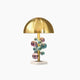 This table lamp combines metal and crystal, presenting a luxurious palace style. The