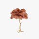 This floor lamp has a unique and artistic design. Its lamp post has a golden texture, as if