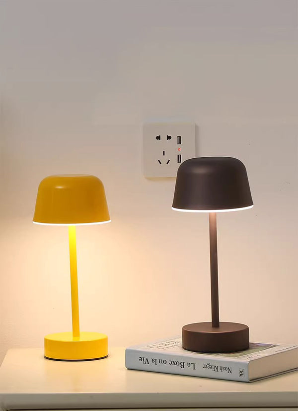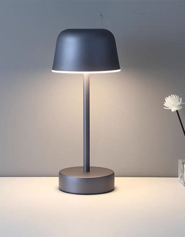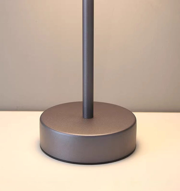 This table lamp has a simple and stylish design, with a cylindrical lamp pole connecting a