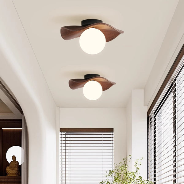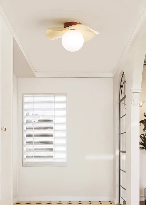 This ceiling lamp has a simple yet creative design. The round base is fixed to the ceiling
