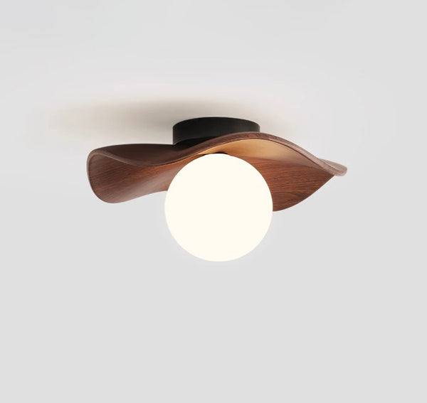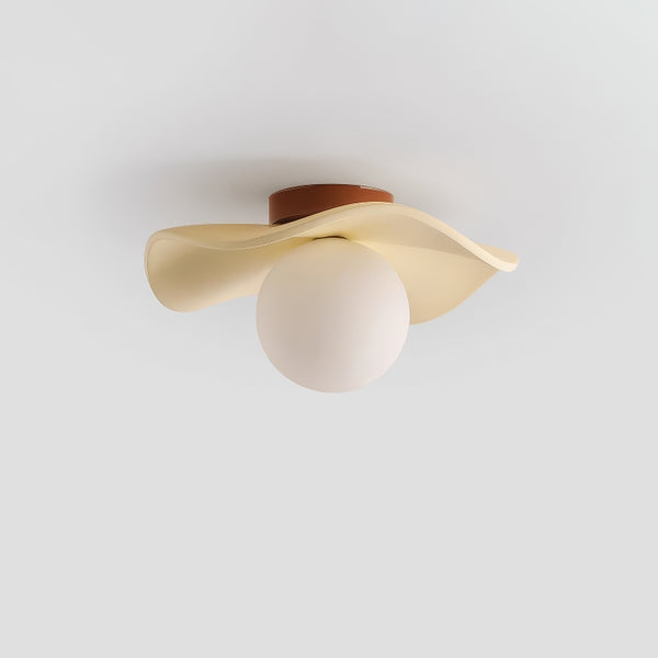 and is connected to a wavy lampshade shaped like a lotus leaf. The lines are smooth and