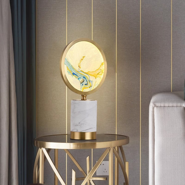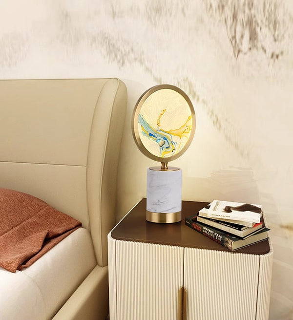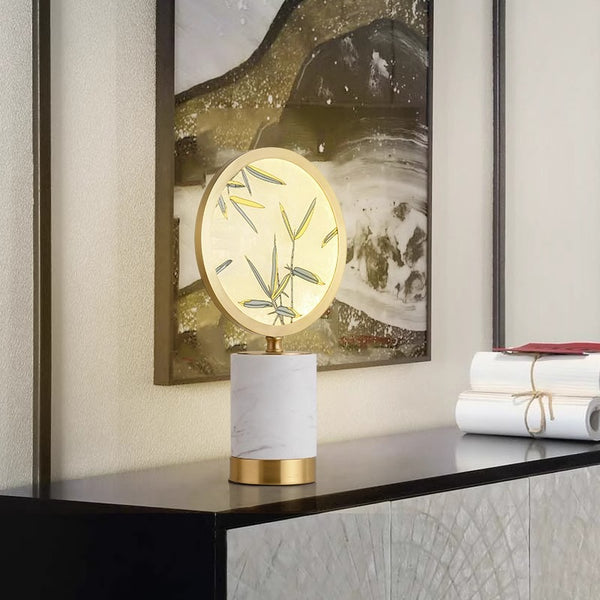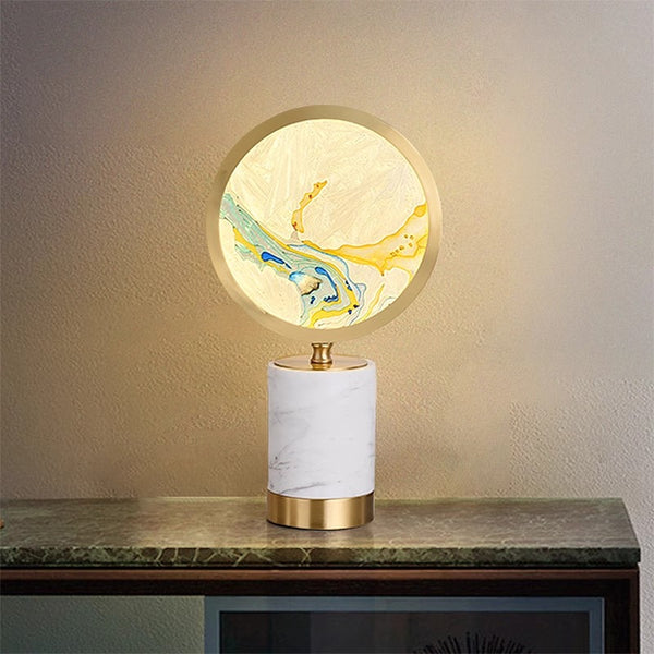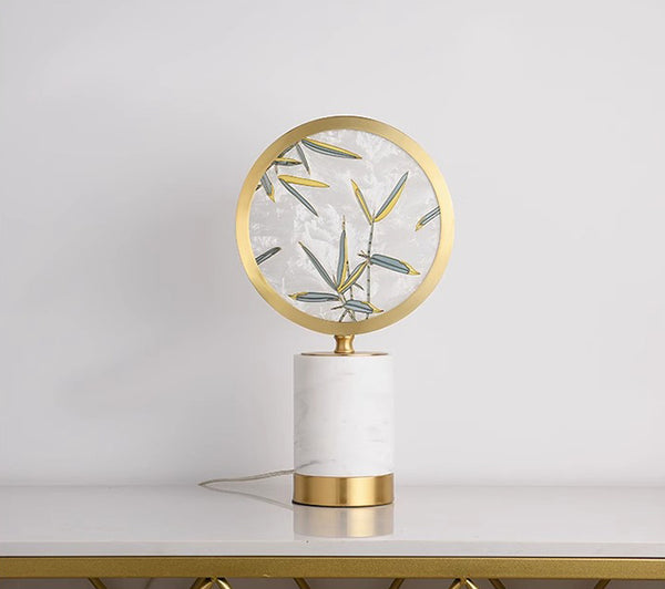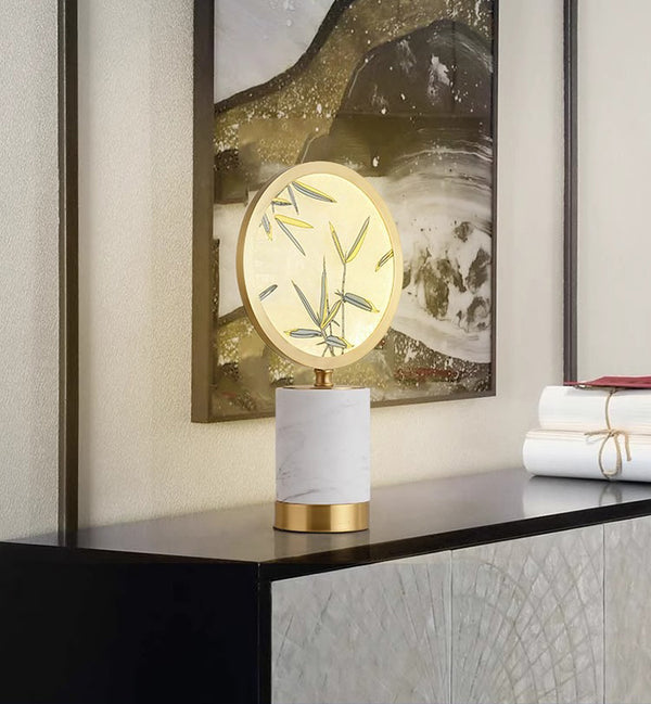 This table lamp is full of artistic beauty and elegance. It has a white marble columnar