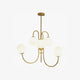 It consists of multiple spherical lampshades and golden brackets. The lampshades are