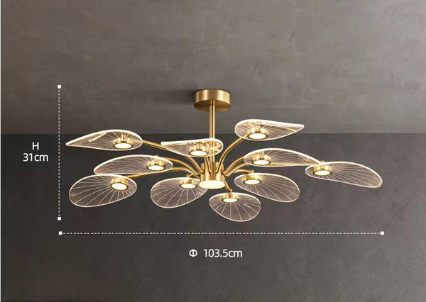 - 10 heads: Dia 103.5cm X H 31cm / Φ 40.7″ X H 12.2″ / Gold / 3 Color Temperature Switchable - $ 810.00
