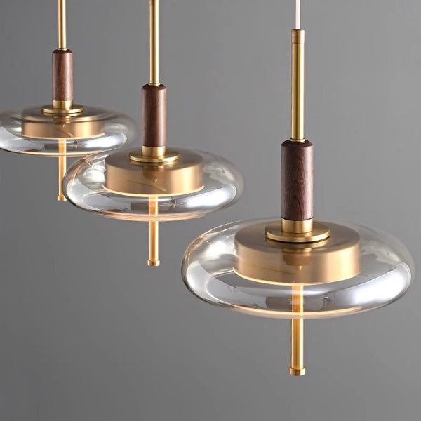This is a chandelier with a very modern and simple style. The transparent glass ring and
