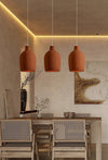 La forme de l'abat-jour est similaire à celle d'une bouteille ronde en céramique, présentant un aspect naturel