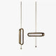 Il se compose d'un long cadre noir et de plusieurs abat-jour rectangulaires dorés. Le noir