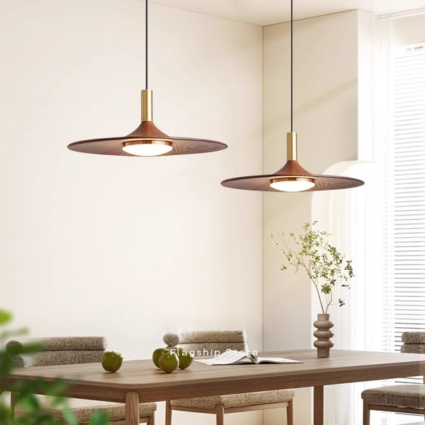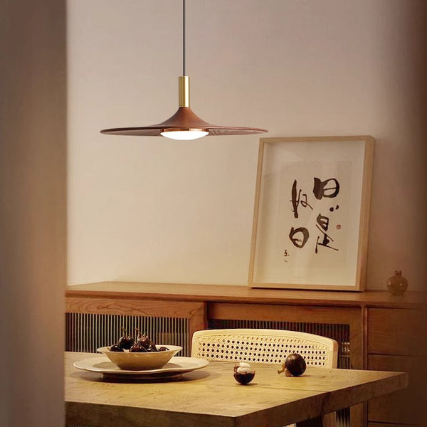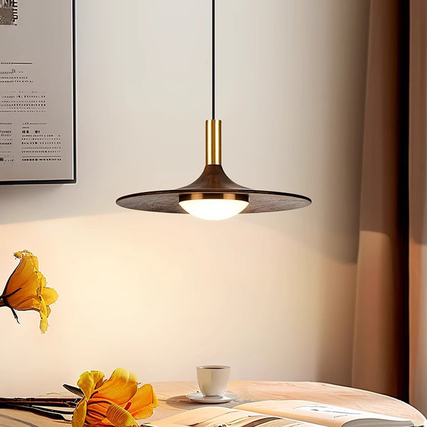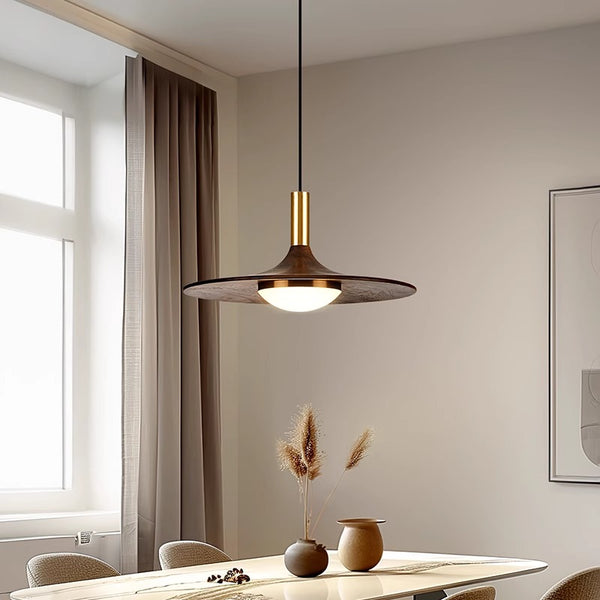 Voici un lustre simple et élégant, qui ressemble à une soucoupe volante. Les formes arrondies et
